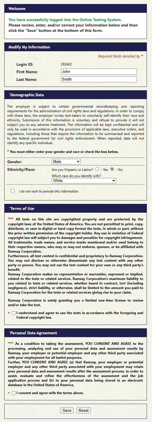 The Online Testing System is located at https://www.ramsaycorp.com/onlinetesting2/